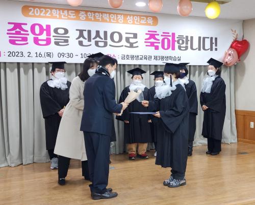 17ÀÏ ±ÝÈ£Æò»ý±³À°°ü¿¡ µû¸£¸é À̹ø Á¹¾÷½Ä¿¡¼´Â Áö³ 2020³â 3¿ù¿¡ ÀÔÇÐÇØ 3³â µ¿¾È ÁßÇÐ1~3´Ü°è °úÁ¤À» ¸ðµÎ À̼öÇÏ¸ç ±¸½½¶¡À» È기 ¸¸Çеµ 9¸í¿¡°Ô ÇзÂÀÎÁ¤¼¸¦ ¼ö¿©Çß´Ù. ¶Ç ±³À°°¨ ǥâÀ» ºñ·ÔÇÑ °³±Ù»ó, °ø·Î»ó µî °¢Á¾ ½Ã»óÀ» ÅëÇØ Á¹¾÷ÀÇ ±â»ÝÀ» ´õÇß´Ù.
