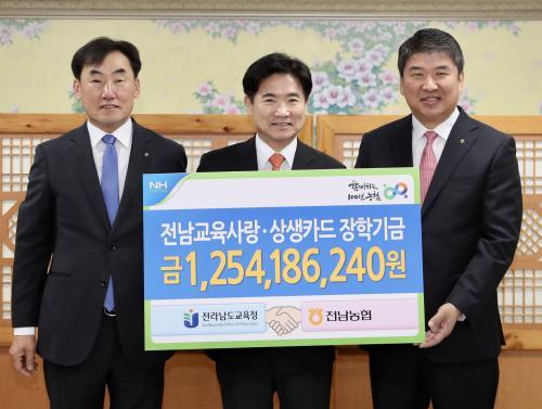 ±è´ëÁß ÀÌ»çÀåÀº ¡°NH³óÇùÀºÇà°ú ÇÔ²² Á¶¼ºÇÑ Àü³²±³À°»ç¶û¡¤»ó»ýÄ«µå ÀåÇбâ±ÝÀº Àü³² ÇлýµéÀÌ ²ÞÀ» ÆîÄ¡´Â µ¥ ¼ÒÁßÇÑ ¹Ø°Å¸§À¸·Î ¾²ÀÏ °Í¡±À̶ó¸ç ¡°Àü³² ÇлýµéÀÇ º¹Áö ÁõÁøÀ» À§ÇØ ±â±ÝÀ» º¸´Ù Åõ¸íÇϰí È¿À²ÀûÀ¸·Î ¿î¿µÇϰڴ١±°í ¸»Çß´Ù.