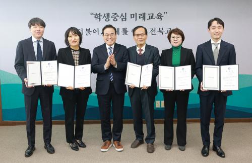 ÀüºÏ±³À°Ã»Àº 10ÀÏ µµ±³À°Ã» Á¢°ß½Ç¿¡¼ ±èÁ¾¿À¡¤°È£¼®¡¤³ª¿µÁÖ¡¤±¹¼øÈ¡¤±èÁø¹Ì µî 5¸íÀÇ º¯È£»ç¸¦ ÀüºÏ±³À°Ã» °í¹®º¯È£»ç·Î À§ÃË, À§ÃËÀåÀ» ¼ö¿©Çß´Ù°í ¹àÇû´Ù.